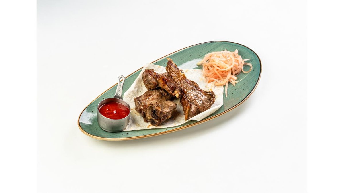 Lamb, onion, bell pepper, pomegranate, lavash, tkemali sauce, tomatoes