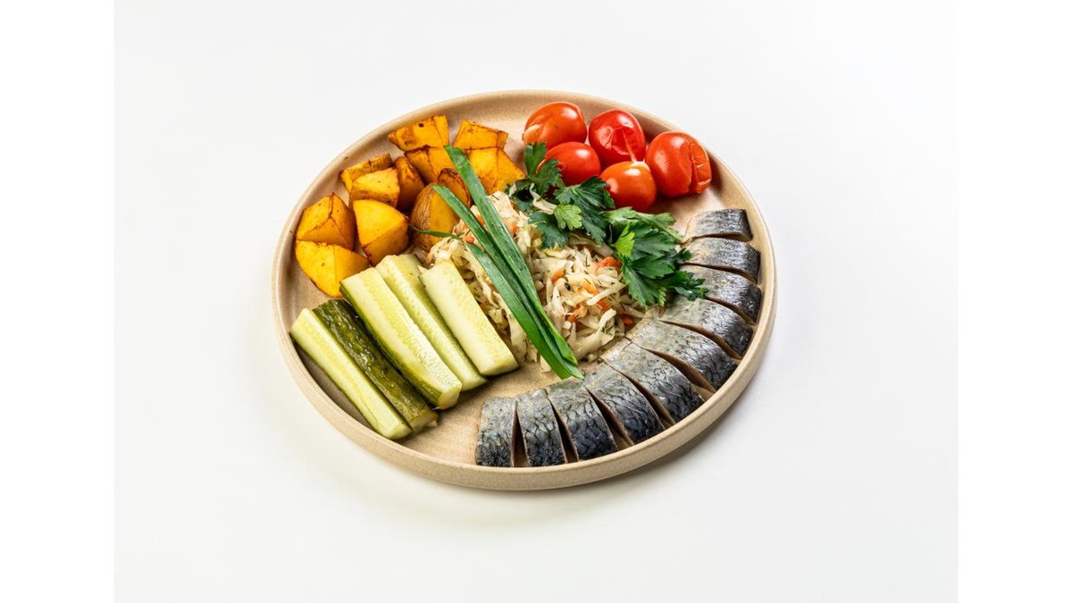 Cold-smoked beef, tongue Beef, pickled cucumbers, fried mushrooms, mayonnaise dressing, marinated cherry tomatoes