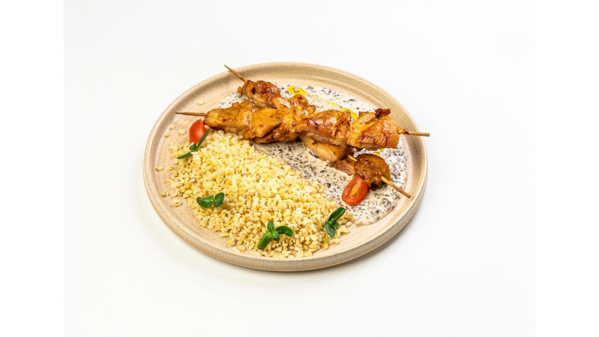 Chicken thigh fillet, bulgur, cream, white wine, mushrooms, garlic