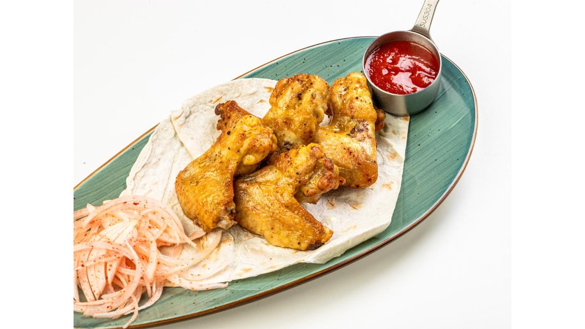 Chicken fillet, chicken wings, duck fillet, lamb, lulya kebab, lavash, sauces