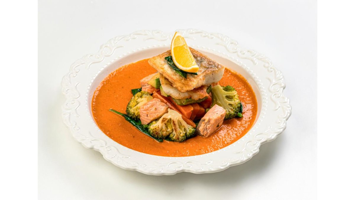 Seafood Duet with Vegetables and Ajvar Sauce
