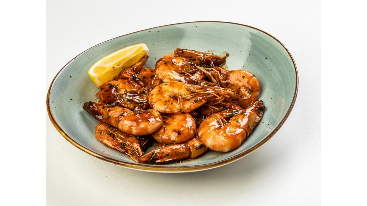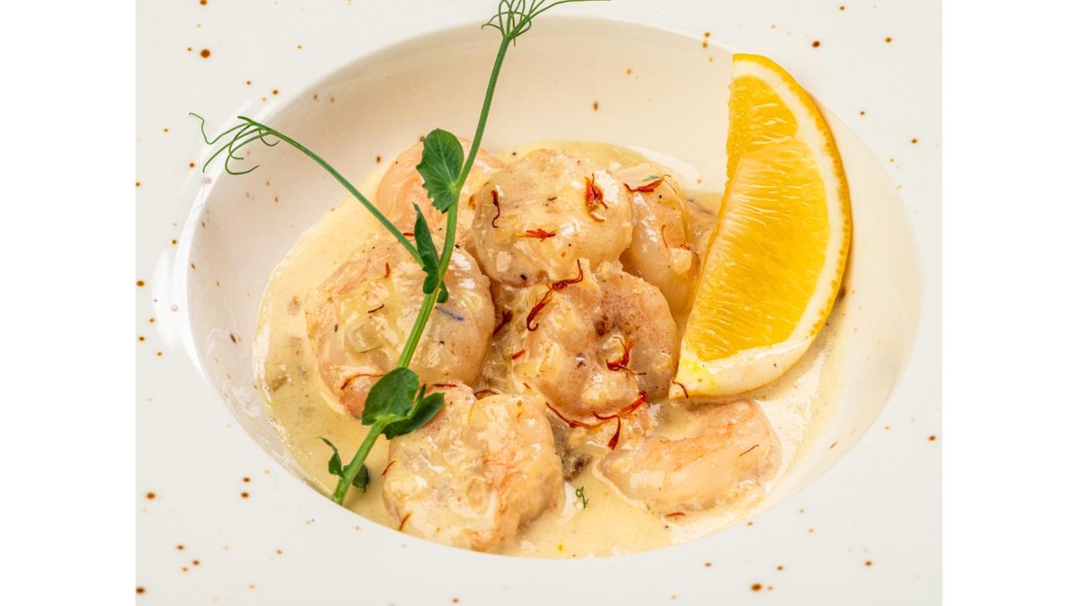 Tiger Shrimp, saffron sauce: onion, garlic, cream, saffron