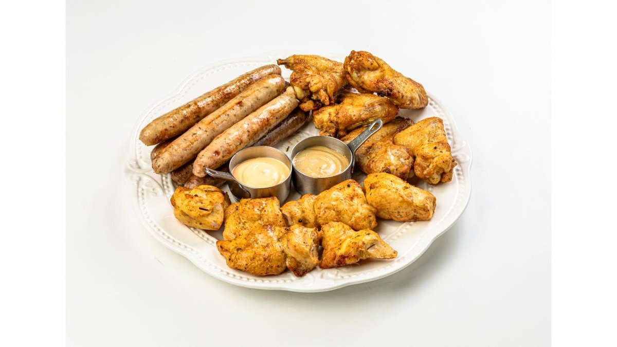 Smoked sausages, garlic croutons, fried chechel, BBQ wings, garlic sauce, BBQ sauce