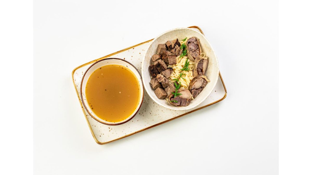 Noodles, shuzhyk, brisket, onion, sorpa