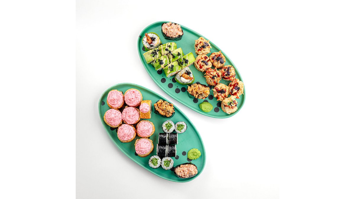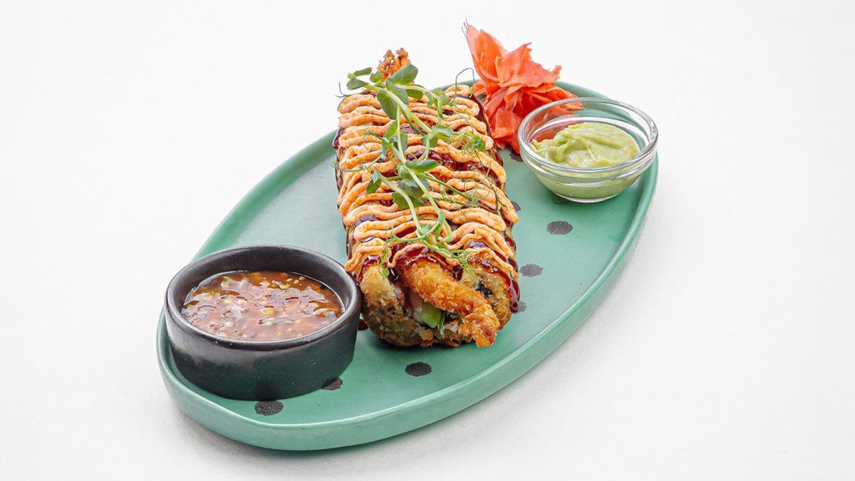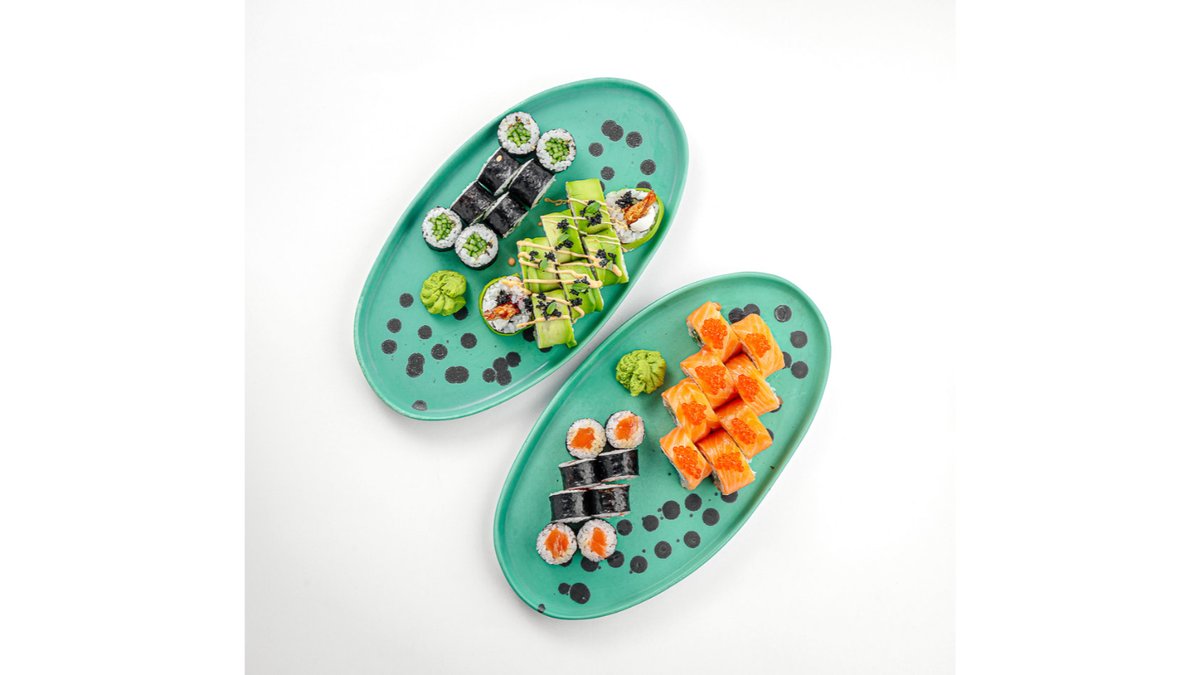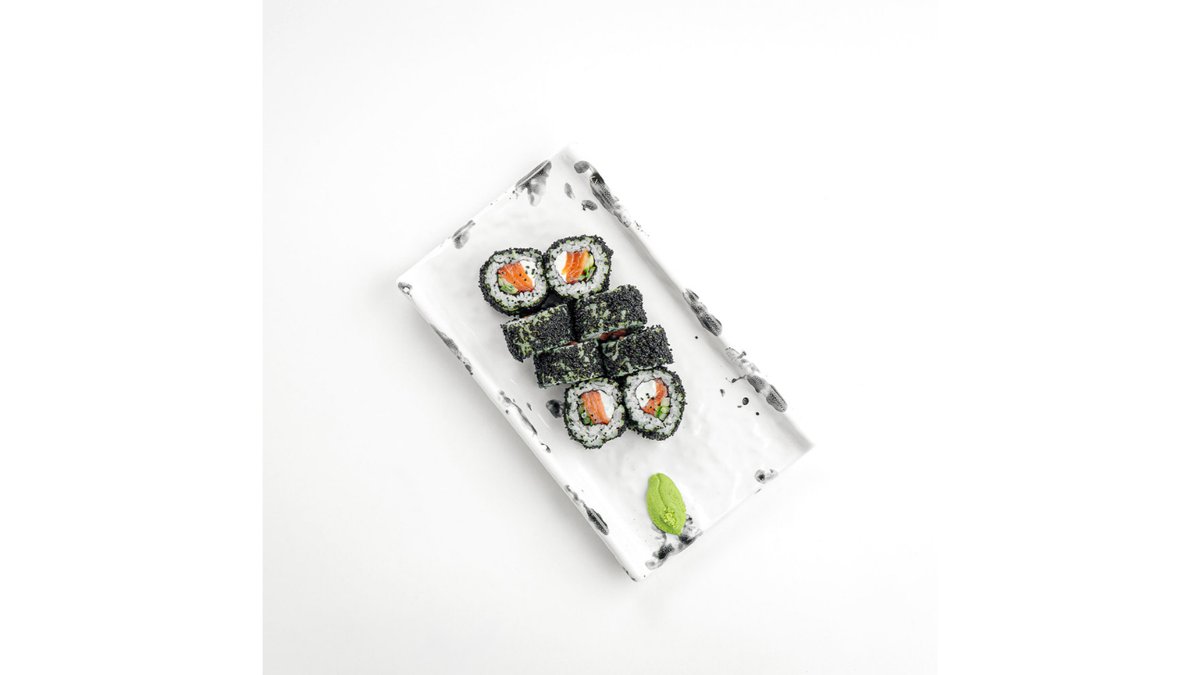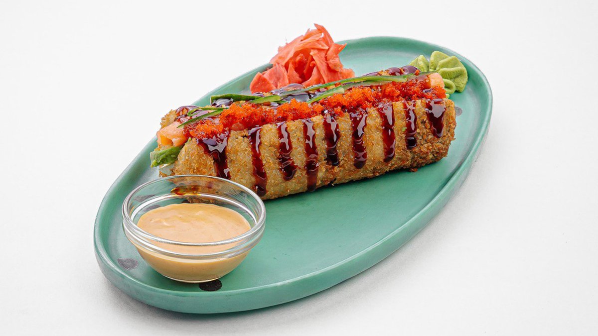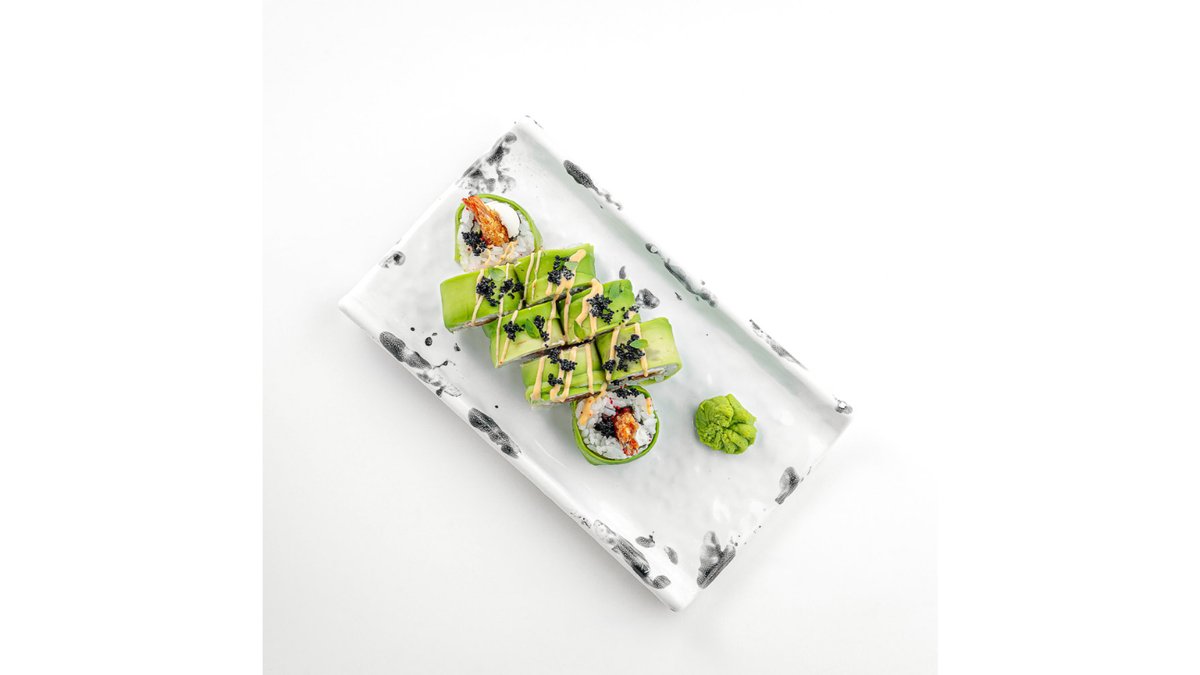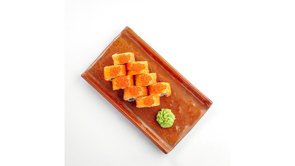 нори,рис,лосось,сыр,авокадо,соус кайсен ,масага