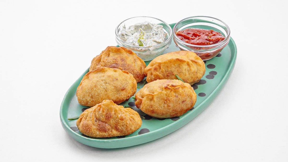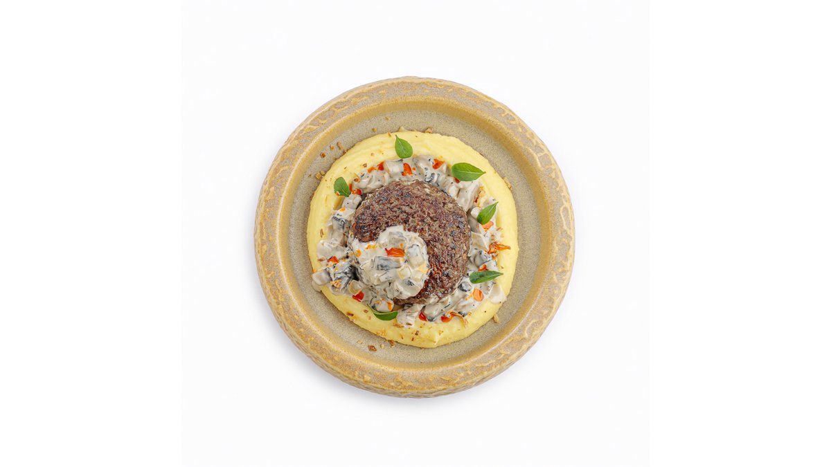 три блинчика, фарш из мраморной говядины, крем пармезан 400гр