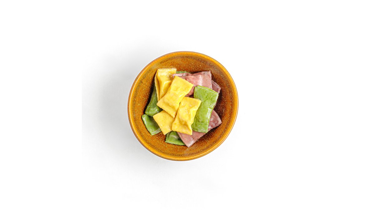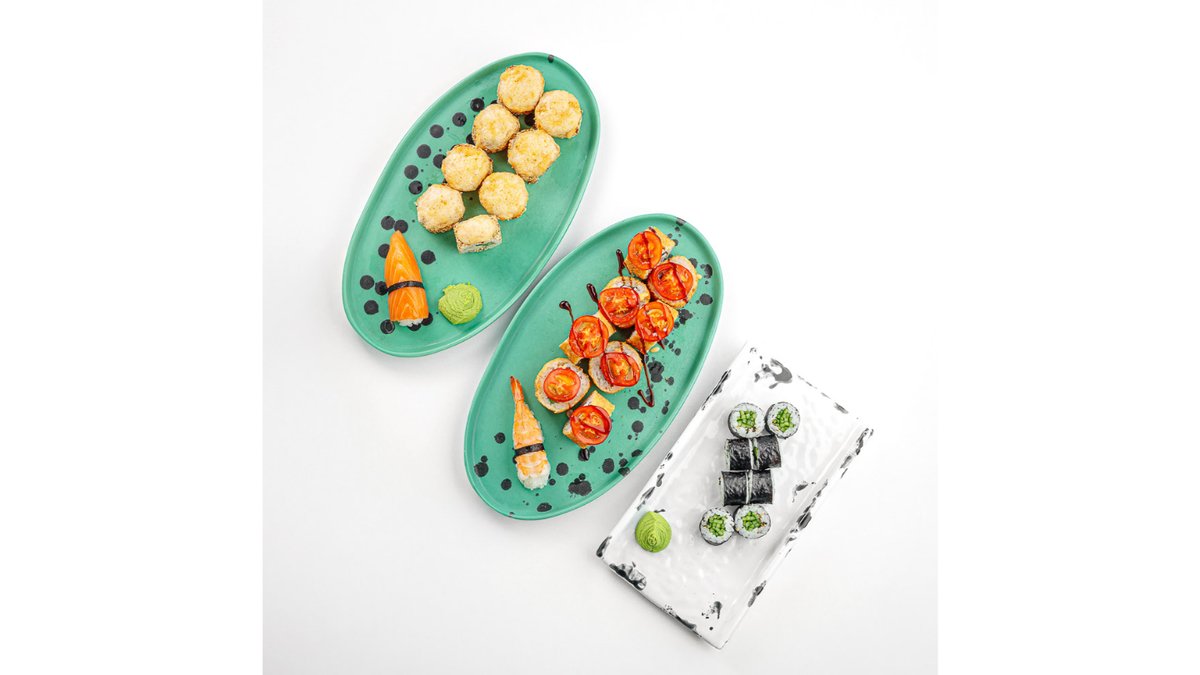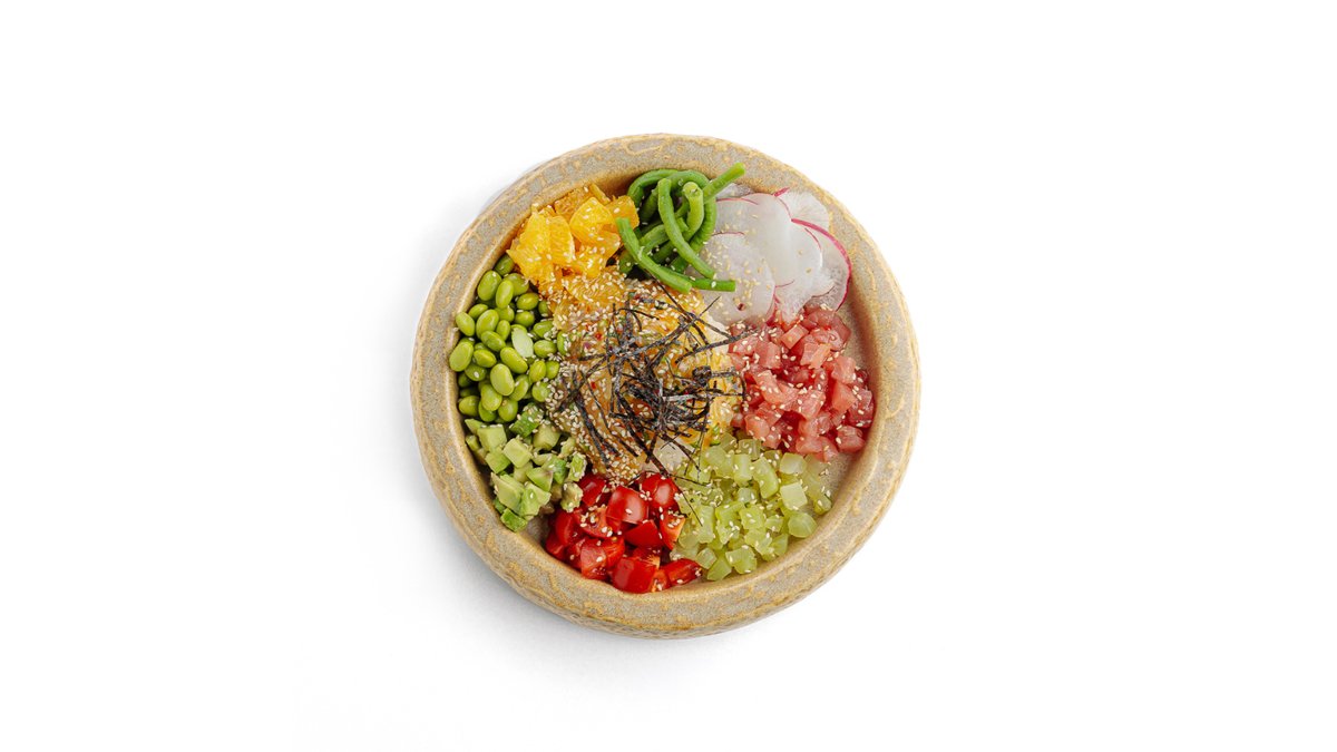 Тунец, японский рис, черри, редис, лаймовый оурец, стручковая фасоль, апельсин, авакадо, эдамаме