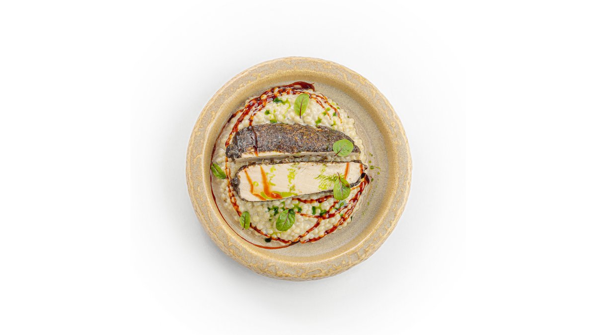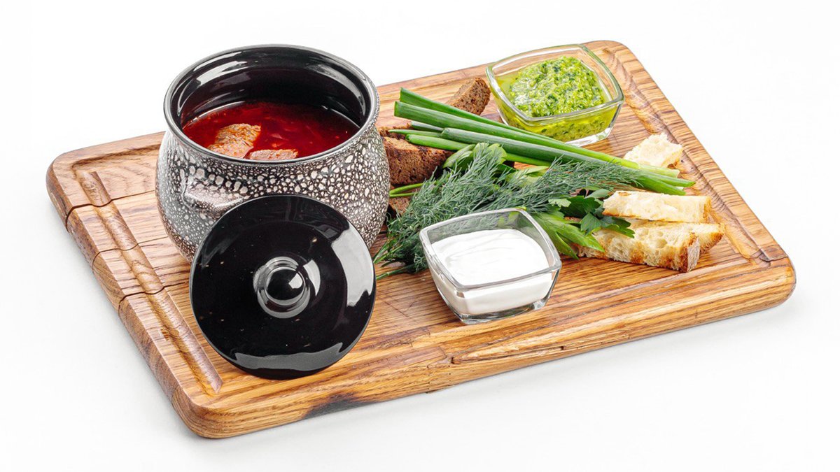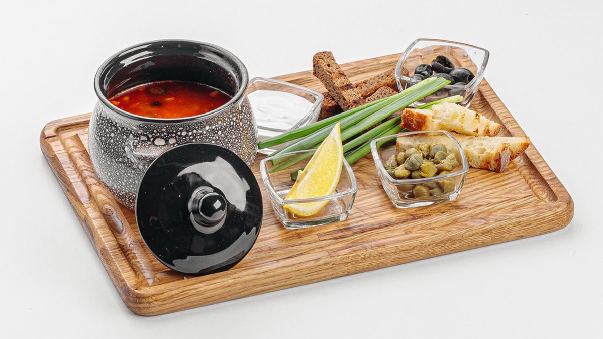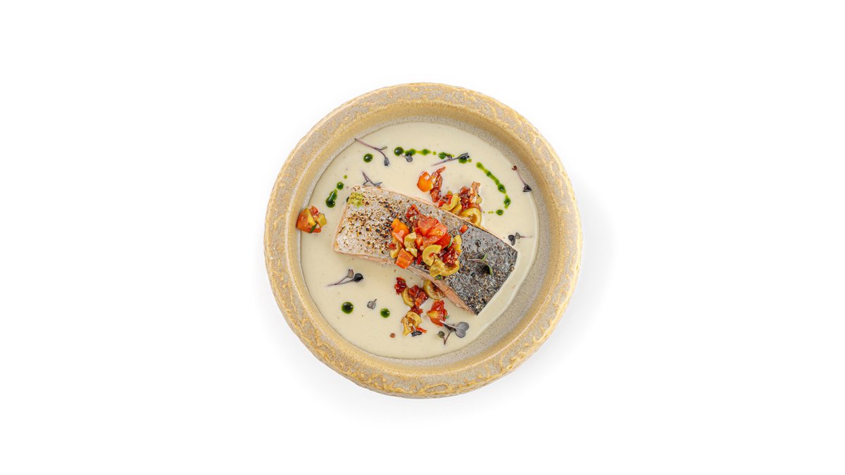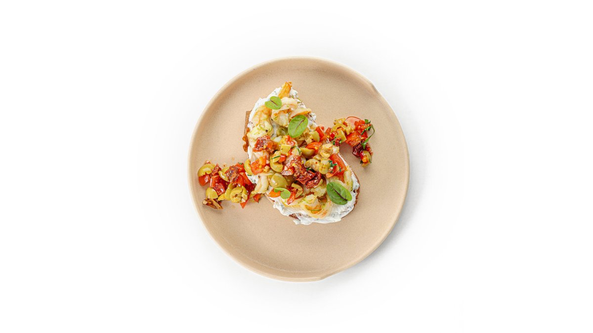 Домашняя чиабатта, крем из молодого сыра, запеченый перец, мраморная говядина пряна сальса 230г