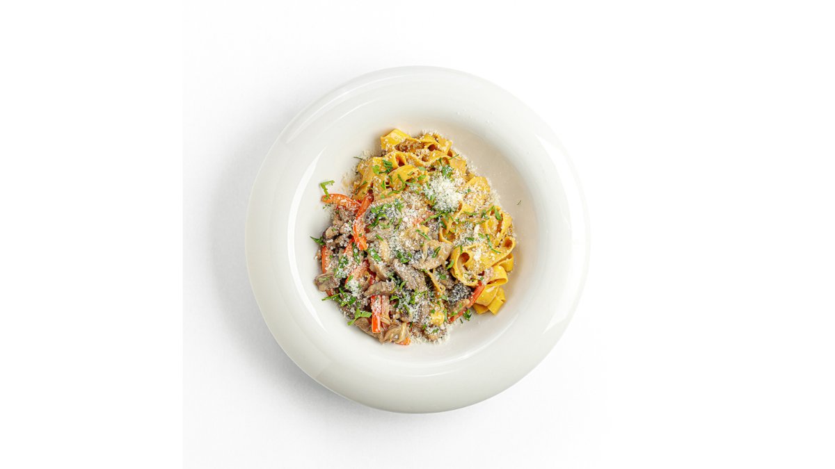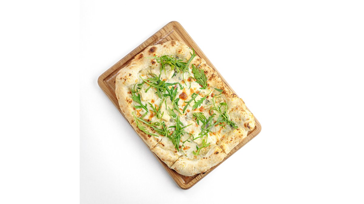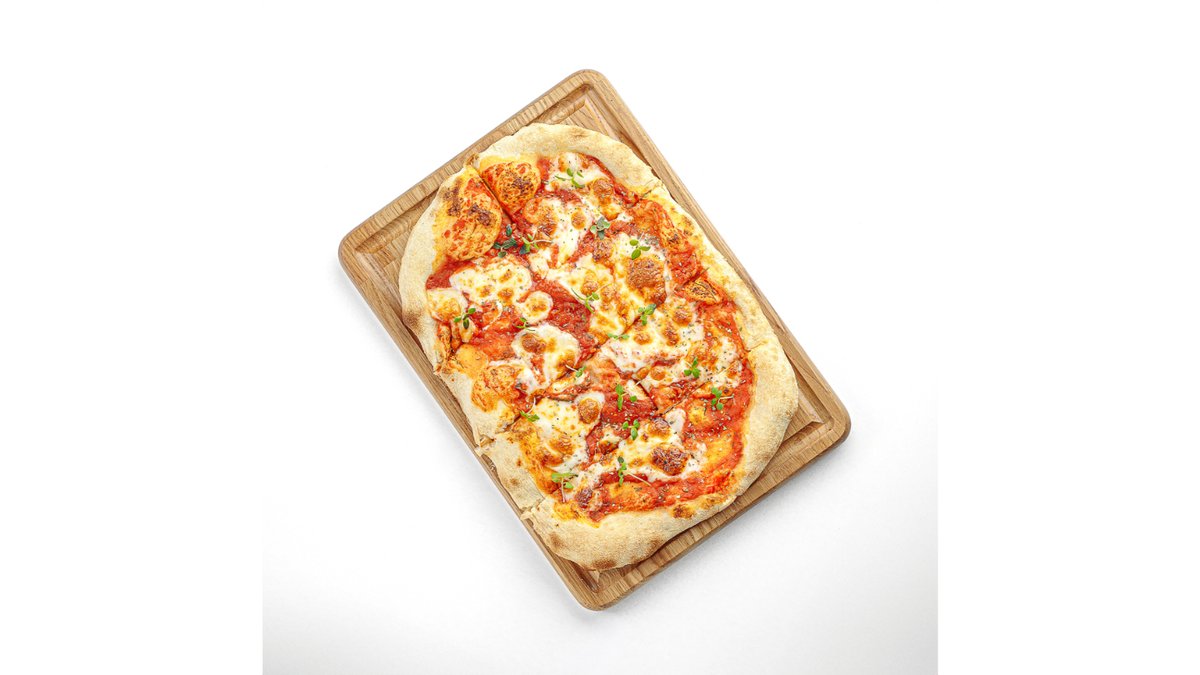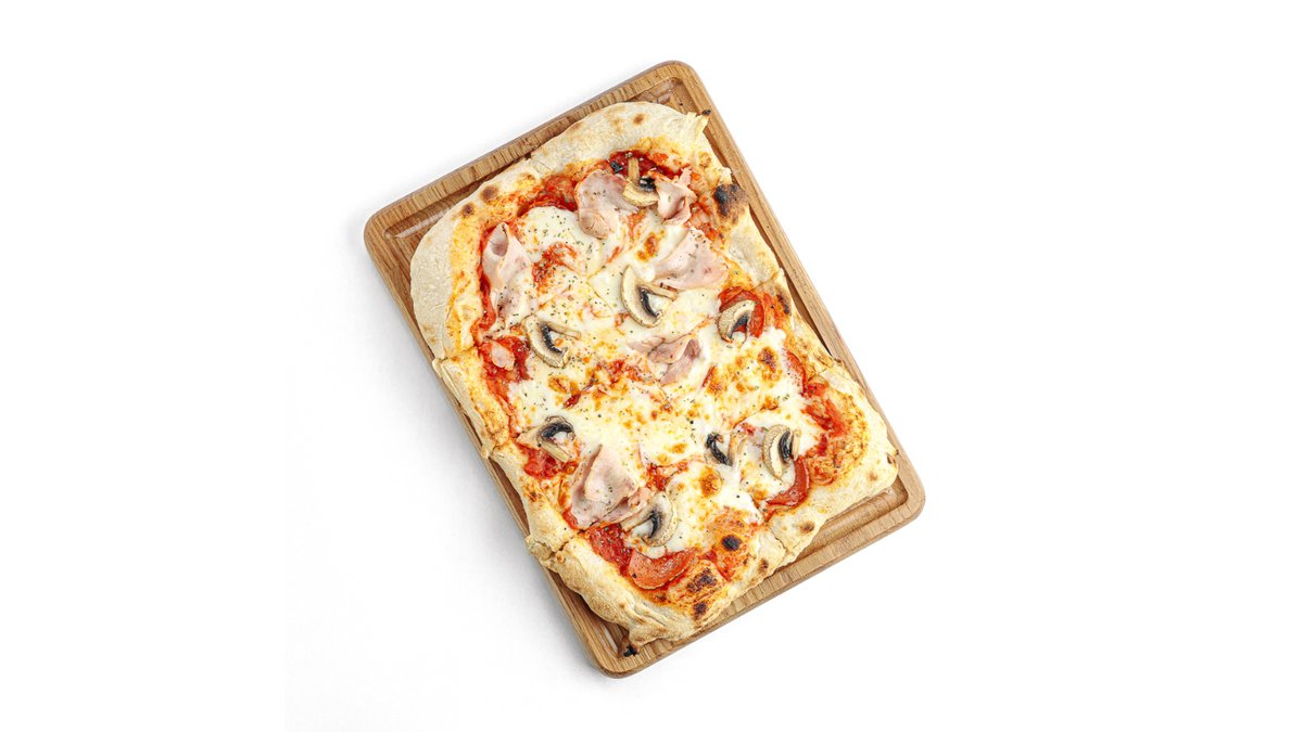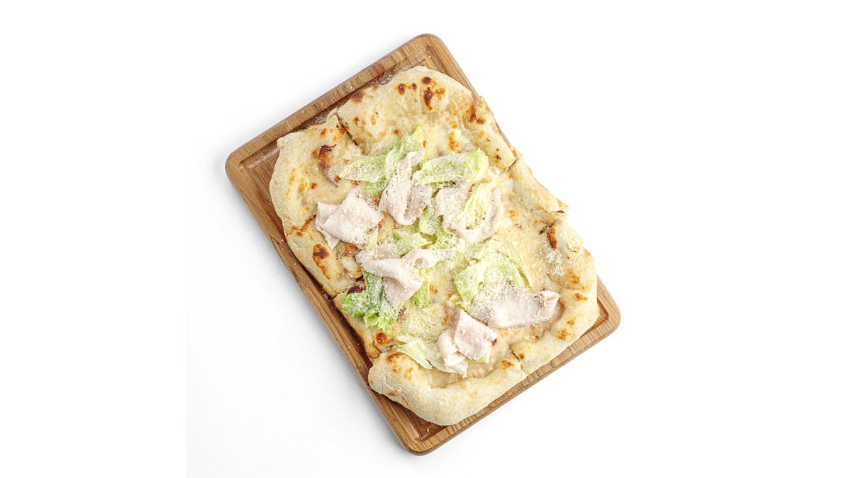 Копченый денвер стейк, копченая утка, куриная грудка, пеперони, домашняя чиабатта, крем пармезан, песто 390г
