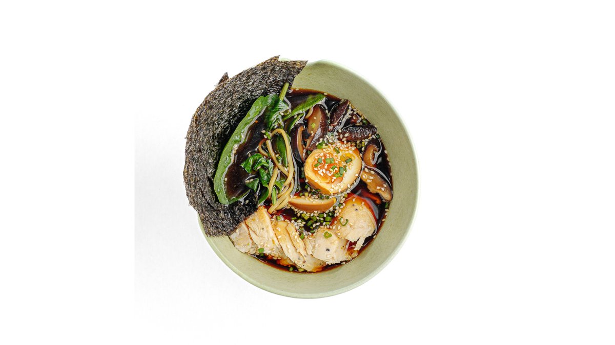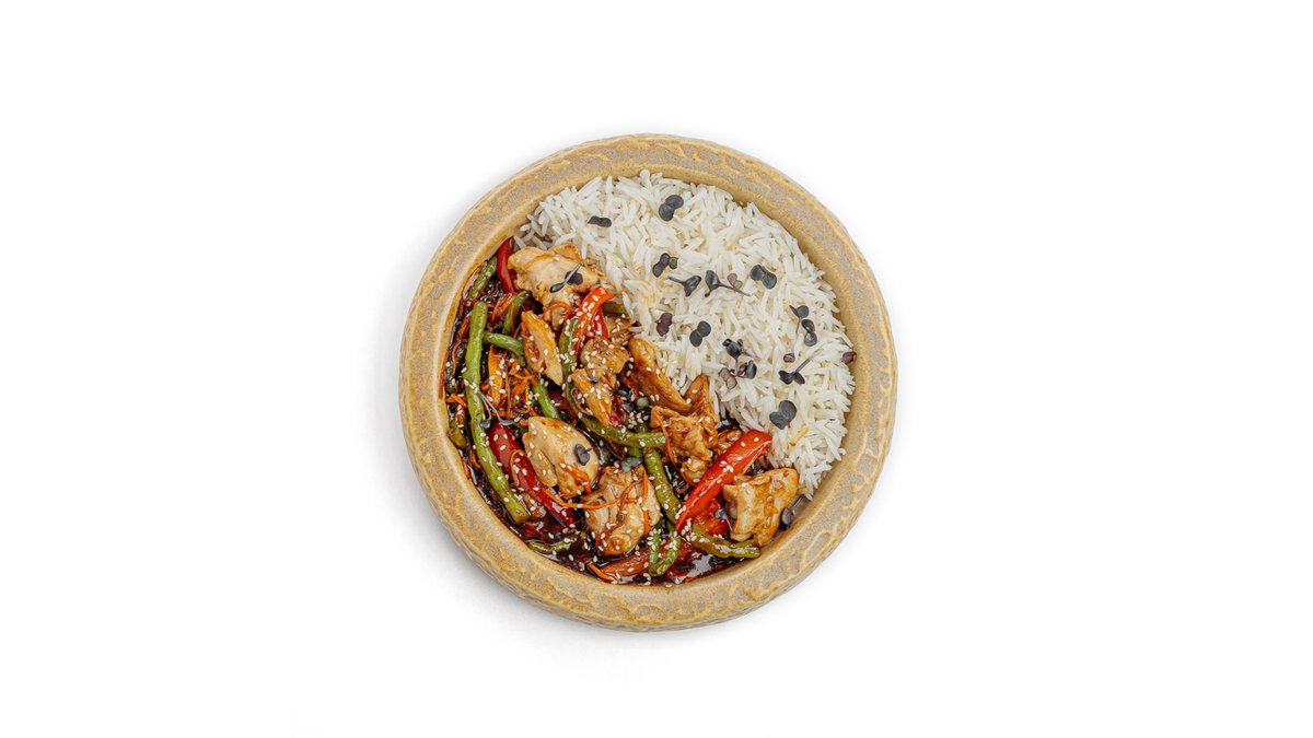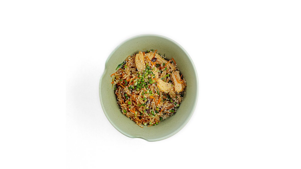 куриная грудка сувид ,айсберг ,огурец,рис,черри,сыр,лук криспи ,сырный соус фокаччино ,нори