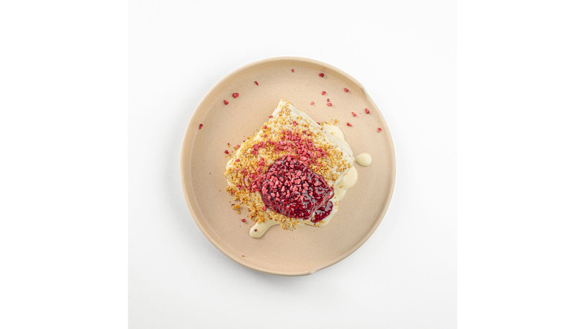 Овсянка, крем из молодого сыра, цедра лимона, сублимированные ягоды 350 гр