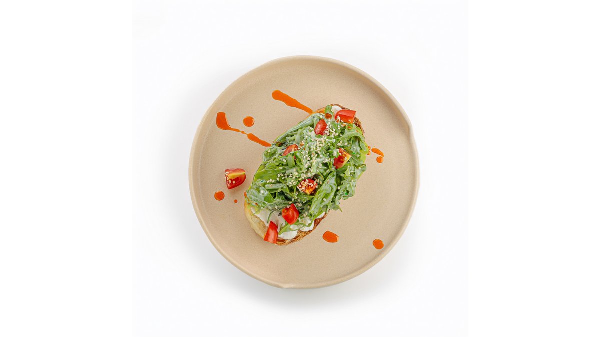 Домашняя чиабатта, авокадо, крем из сыра, руккола, сука, кунжут 220г