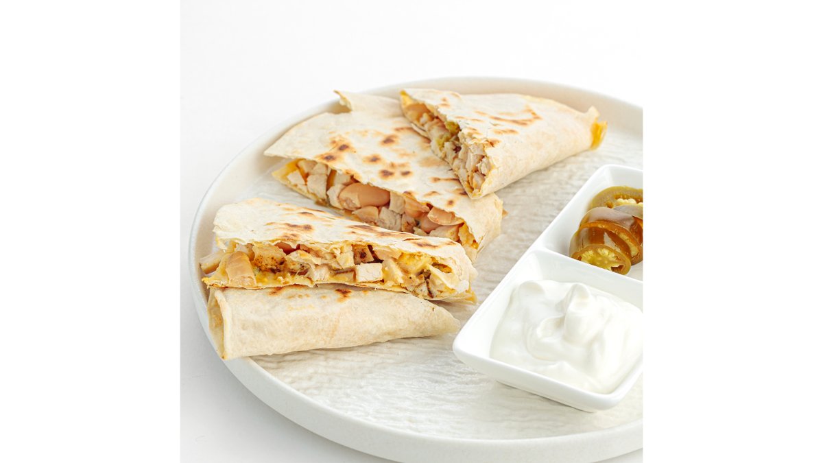 Пита, сыр фондю, кукуруза, фасоль, халапеньо, гуакамоле, куриное филе.