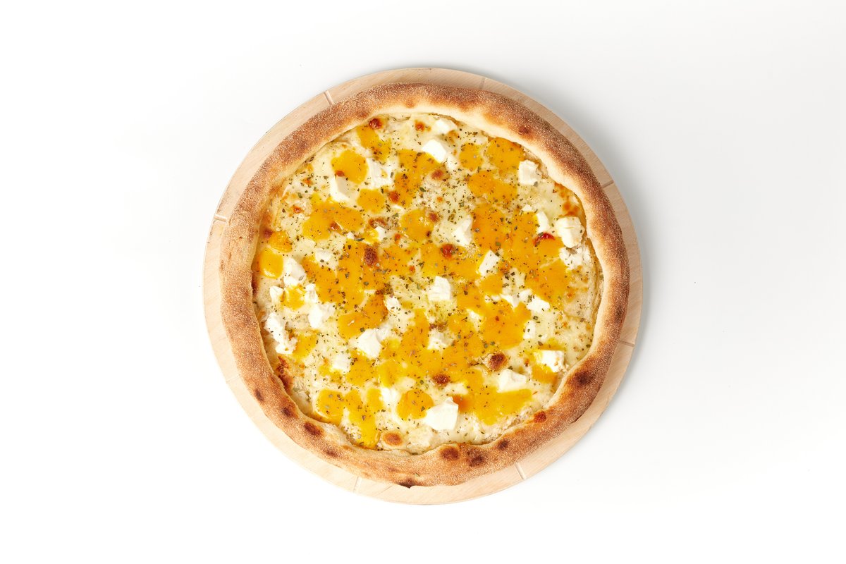 Классическое тесто для пиццы, Белый соус, Сыр Моцарелла, Сыр чеддер, Орегано