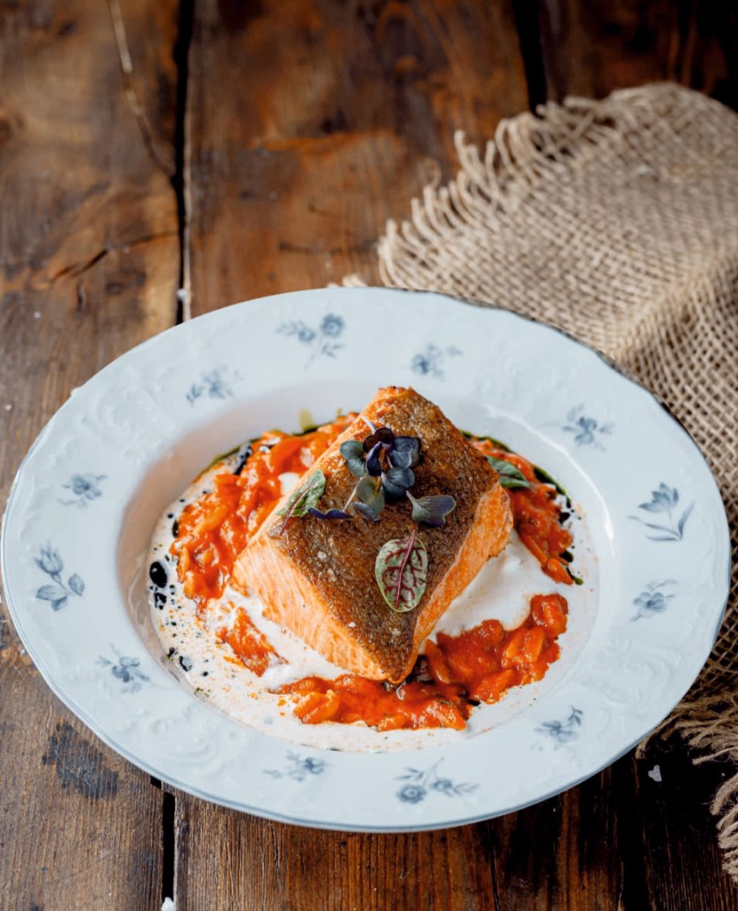Лосось & Орзо: Изысканное сочетание превосходно приготовленного лосося и пасты орзо. Идеальный выбор для гурманов.