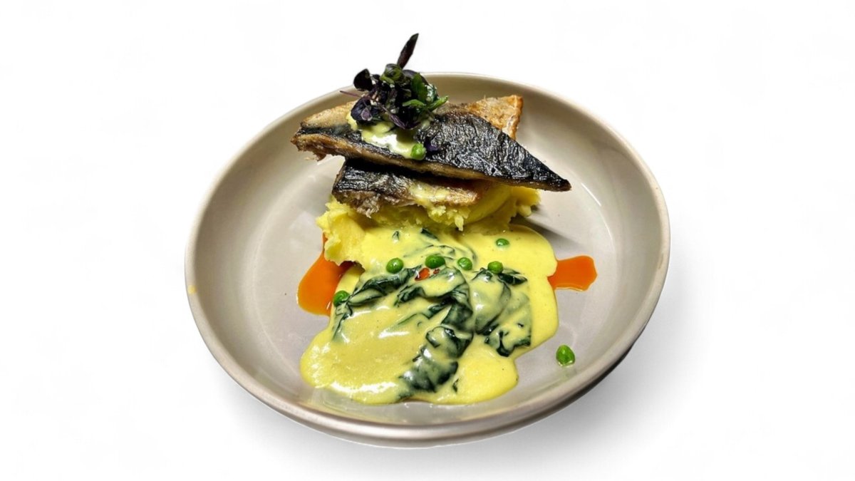 Маринованная сельдь, копчёная скумбрия, картофель с соленьями