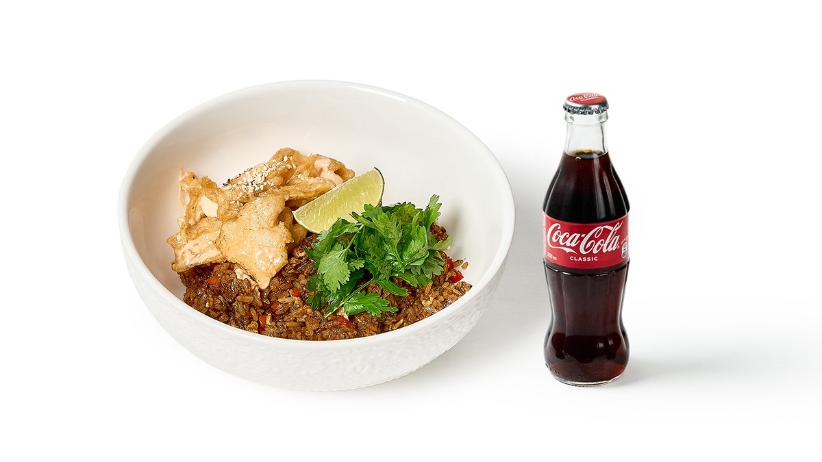 Курица Динамит с обжаренным рисом и овощами + Coca-Cola 250 мл