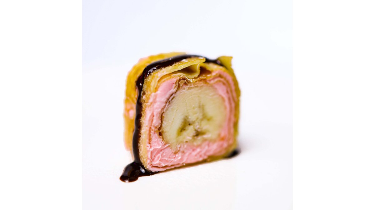 Блинчик, творожная масса, банан, шоколадный сироп