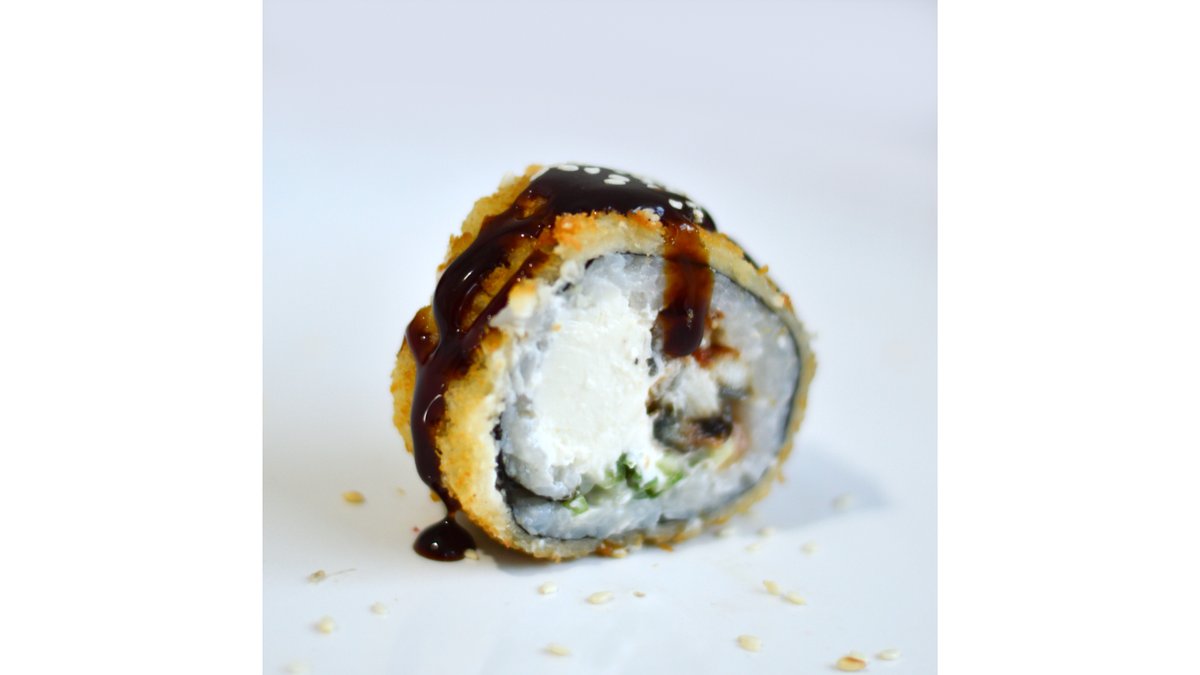 Нори, рис, сыр творожный, огурец, угорь, соус унаги, кляр