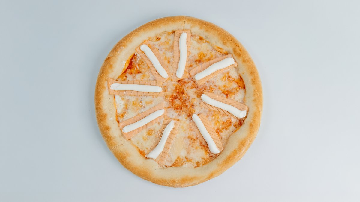 Пицца соус, сыр моцарелла, лосось, творожный сыр творожный