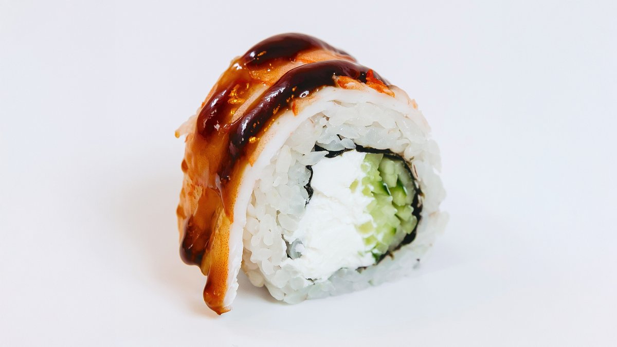 Нори, рис, сыр творожный, огурец, угорь, кунжут, соус унаги