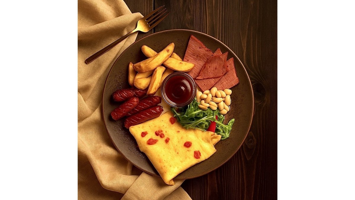 American Breakfast with Smoked Sausages