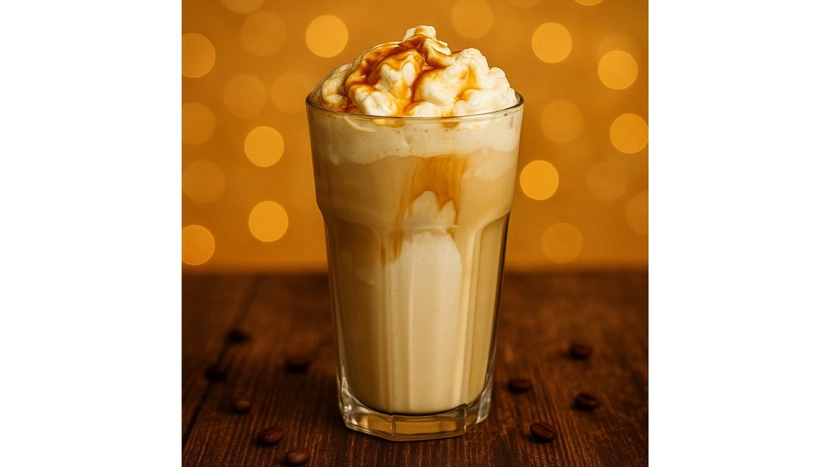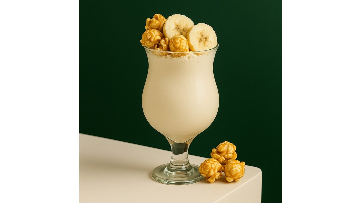 Milk, ice cream, banana syrup, popcorn syrup, whipped cream.