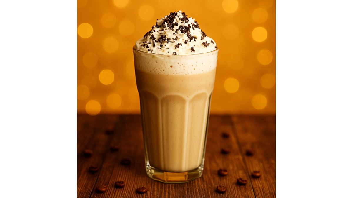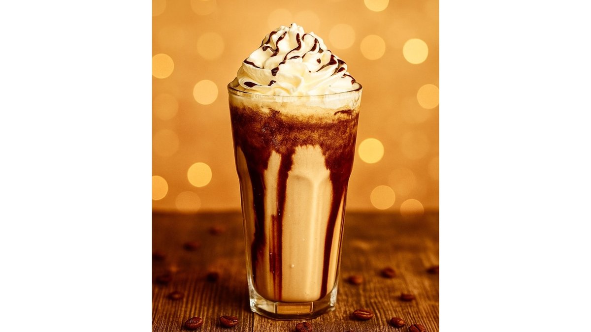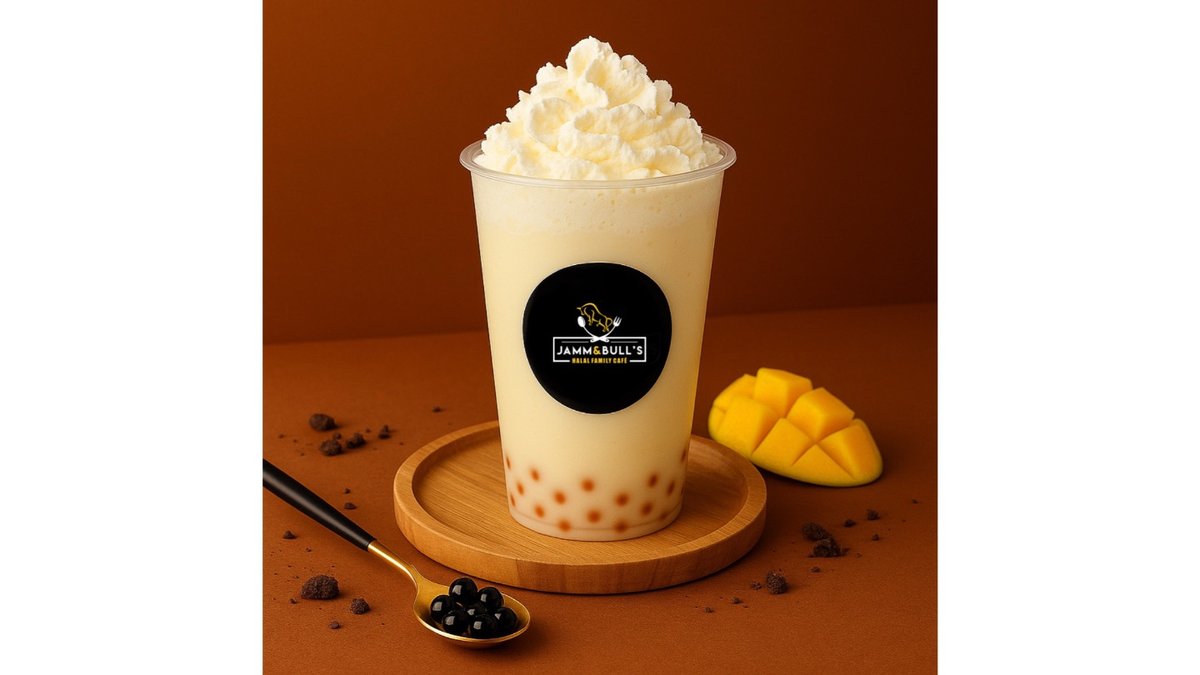 Mango syrup, premium 3.2% milk, ice cream, juice balls, whipped cream.