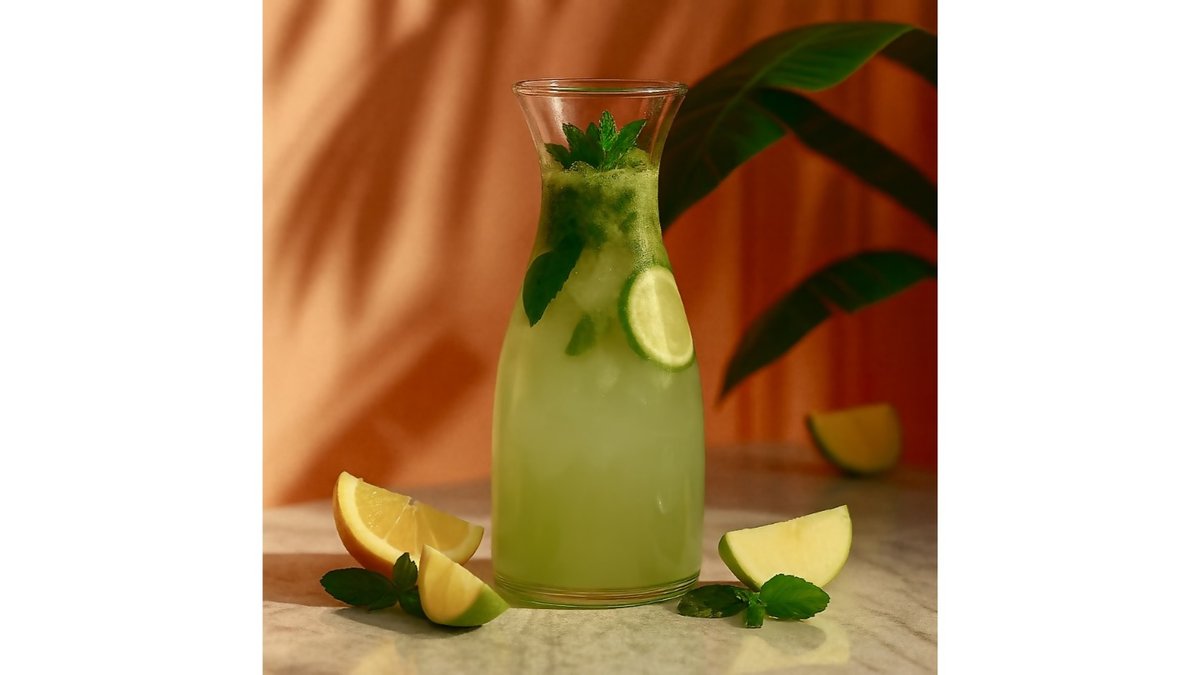 Soda, apple syrup, tarragon syrup, lime, mint.