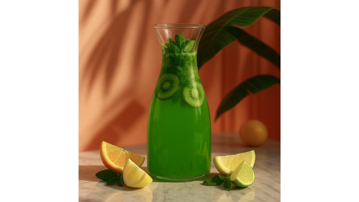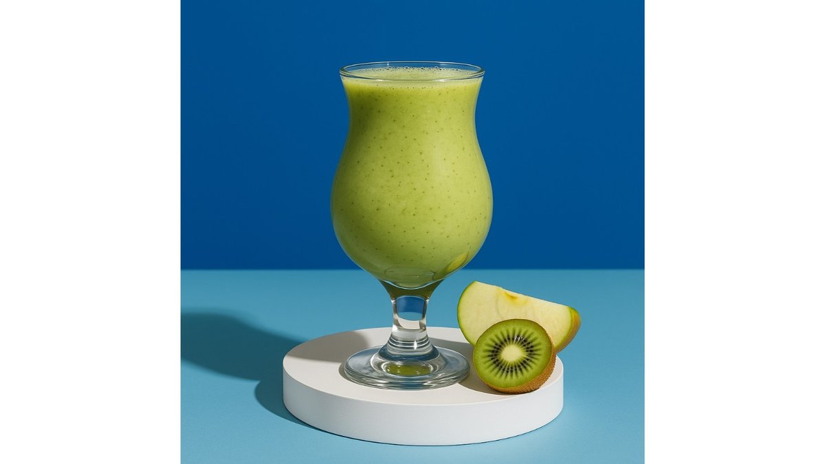Kiwi syrup, apple syrup, apple, kiwi, milk.