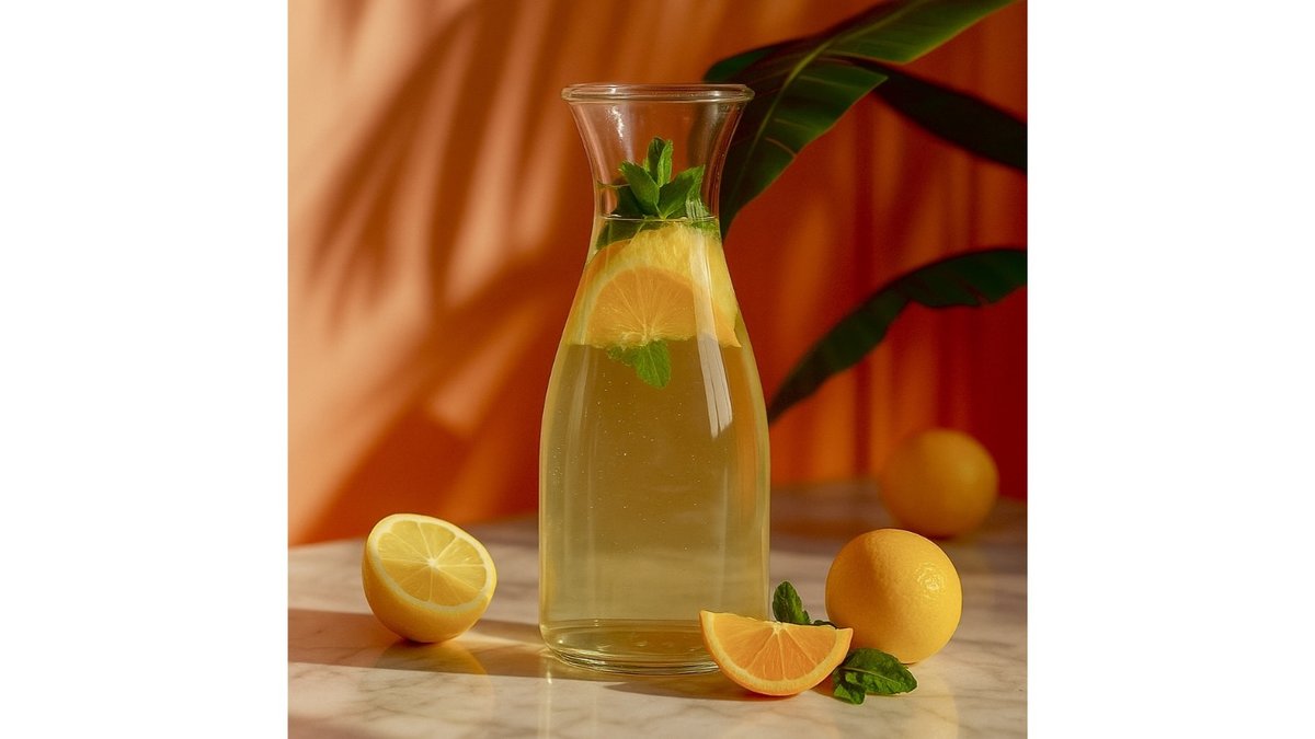 Soda water, lemon syrup, lemon, lime.