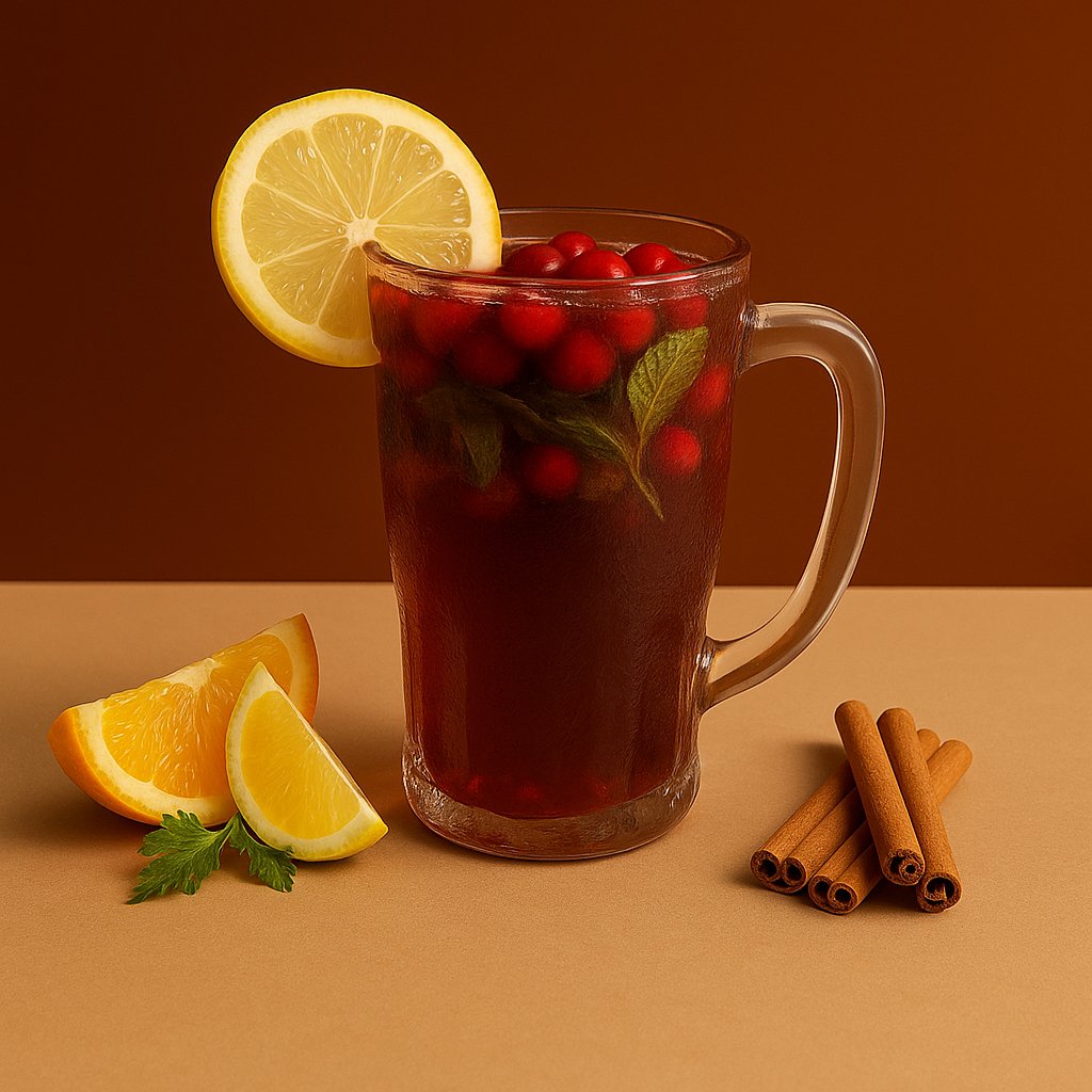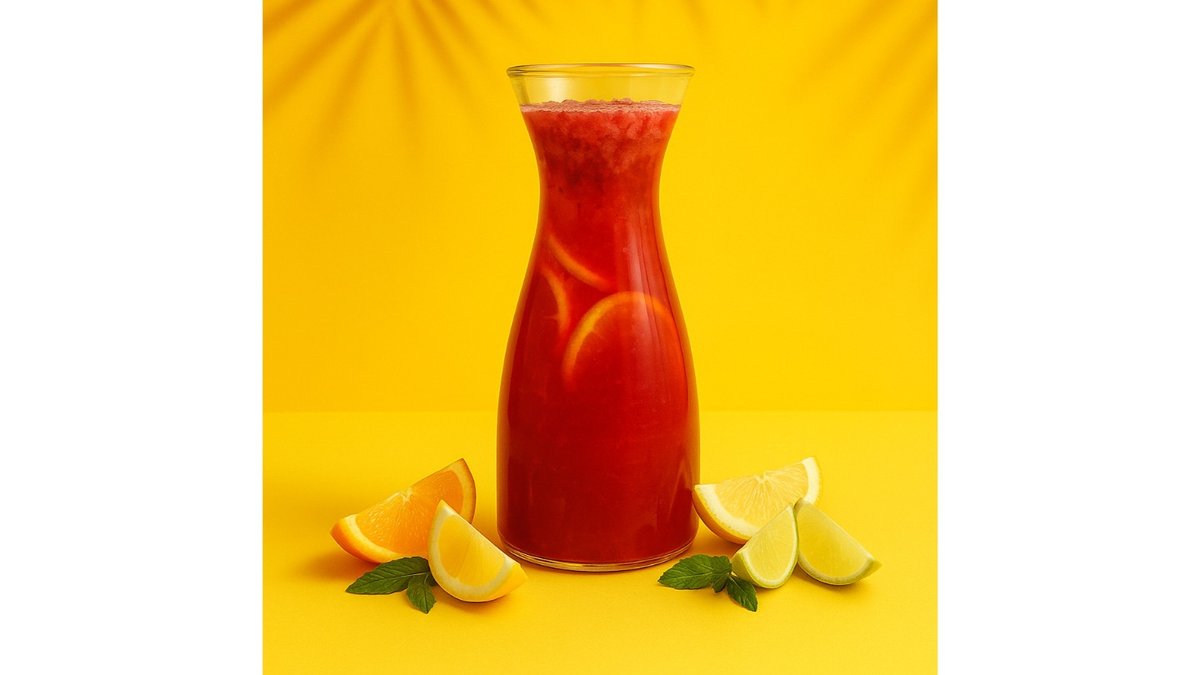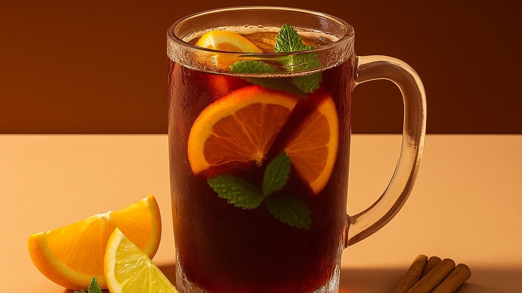 Soda, raspberry syrup, peach syrup, grapefruit pulp, orange, mint.