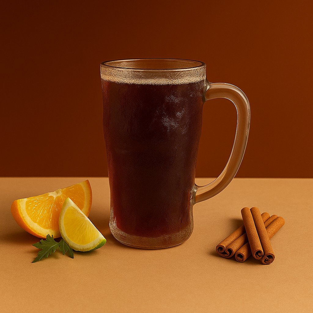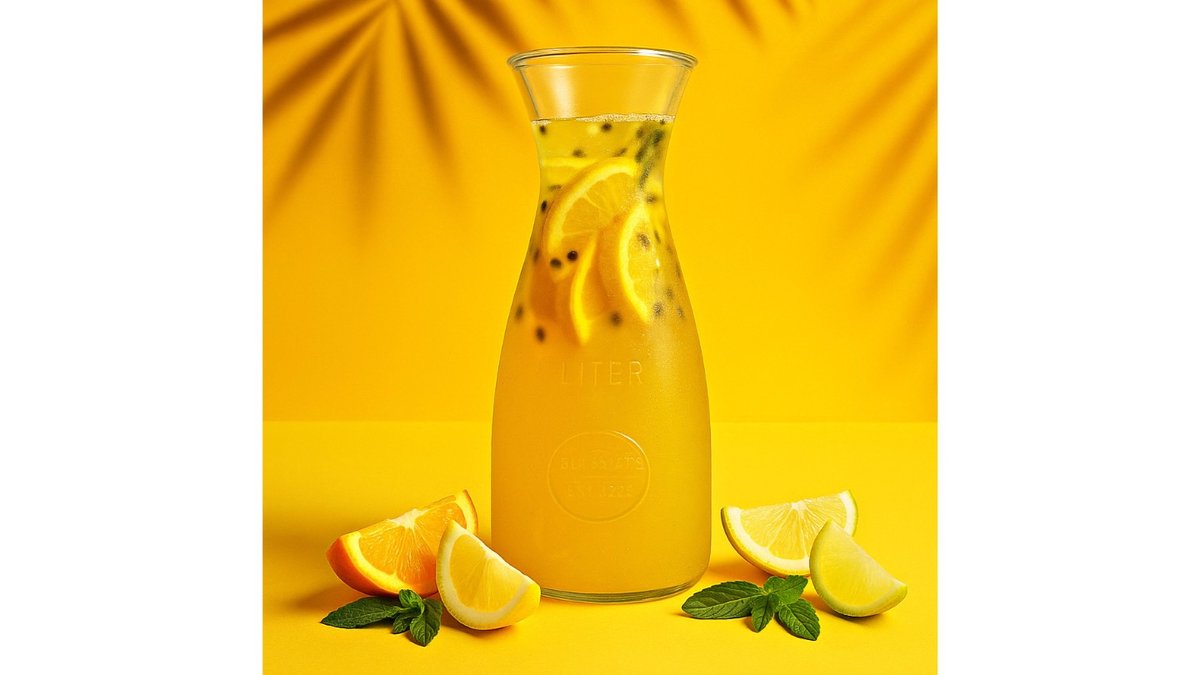 Soda, peach syrup, passionfruit syrup, passionfruit puree, orange, mint.