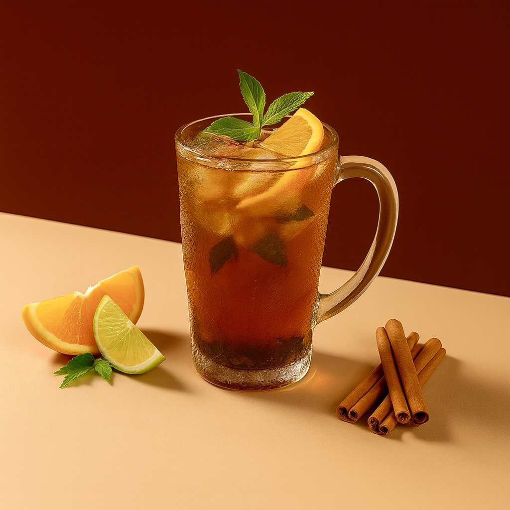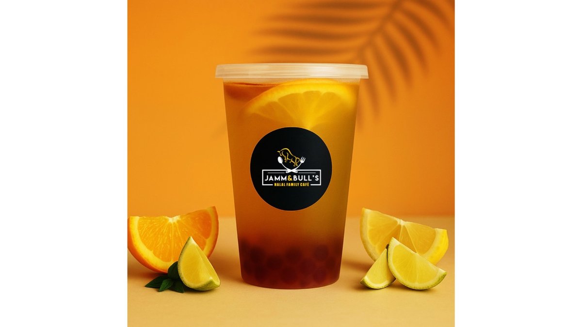 Juice balls, orange, lime, orange syrup, lime syrup, black iced tea