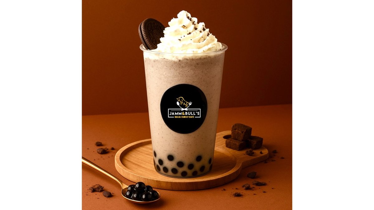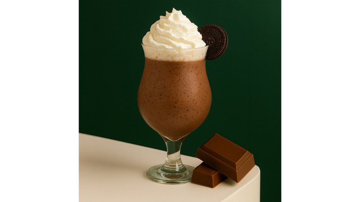Chocolate syrup, Oreo cookies, premium 3.2% milk, ice cream, juice balls, whipped cream.