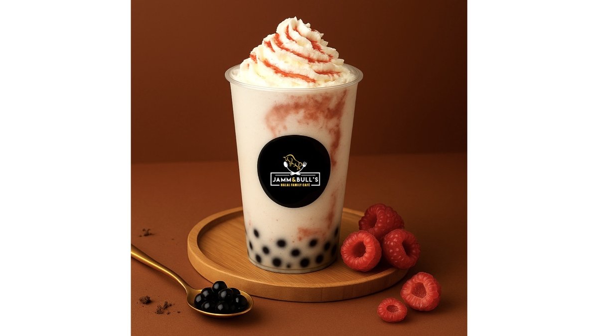 Raspberry syrup, raspberries, premium 3.2% milk, ice cream, juice balls, whipped cream.