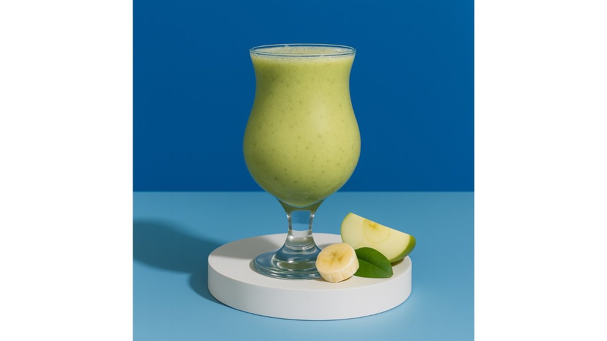 Apple syrup, banana syrup, apple, banana, spinach, milk.