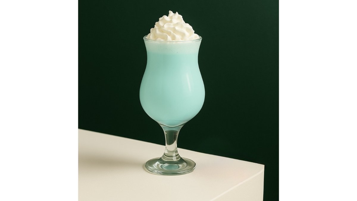 Milk, ice cream, blue curaçao syrup, whipped cream.