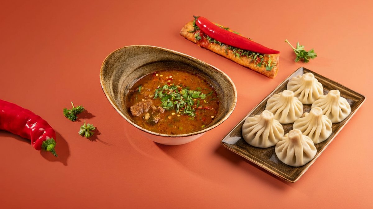 Mažieji chinkali su jautiena ir kiauliena bei pikantišku adžikos ir sūrio padažu, 8 vnt