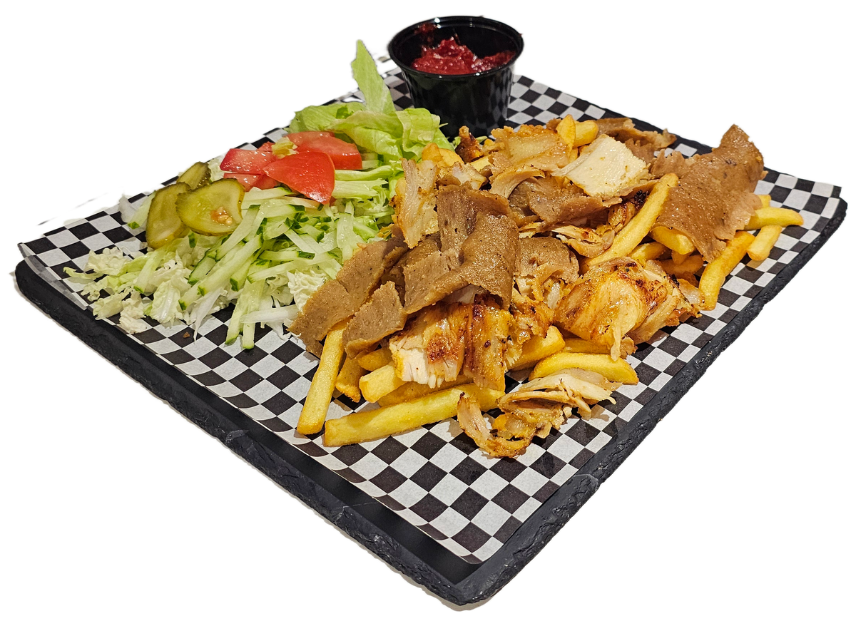 Didelis kebabas lavaše, gruzdintos bulvytės ir pasirinktas gėrimas. Padažas prie bulvyčių nepridedamas. Kebabo sudėtis: pekino kopūstas, Iceberg salotos, agurkai, marinuoti agurkėliai, kebabo mėsa ir padažas