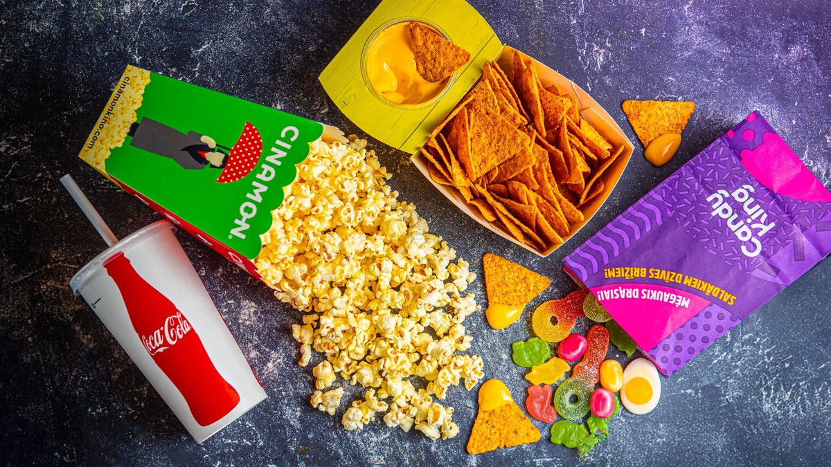Snack big with CINAMON – popcorn, nachos, candy, and drinks perfect for movie nights