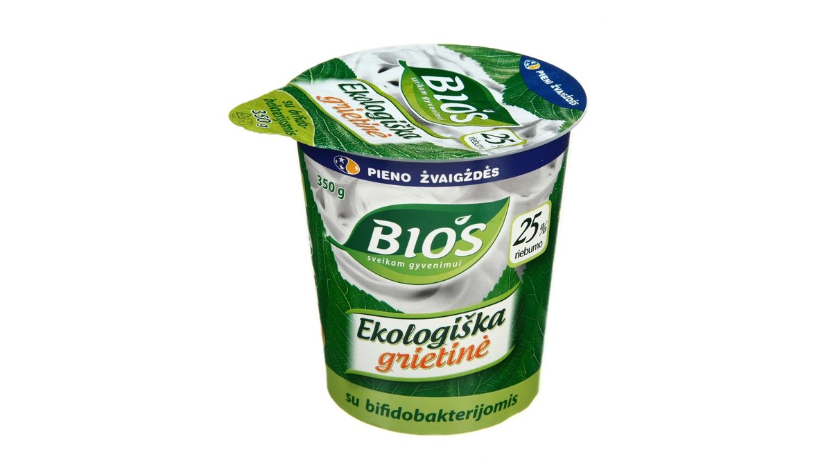 Ekologiška grietinė su bifido bakterijomis BIOS, 25 % rieb., 350 g