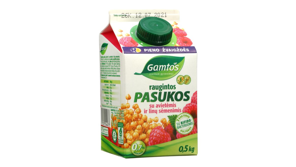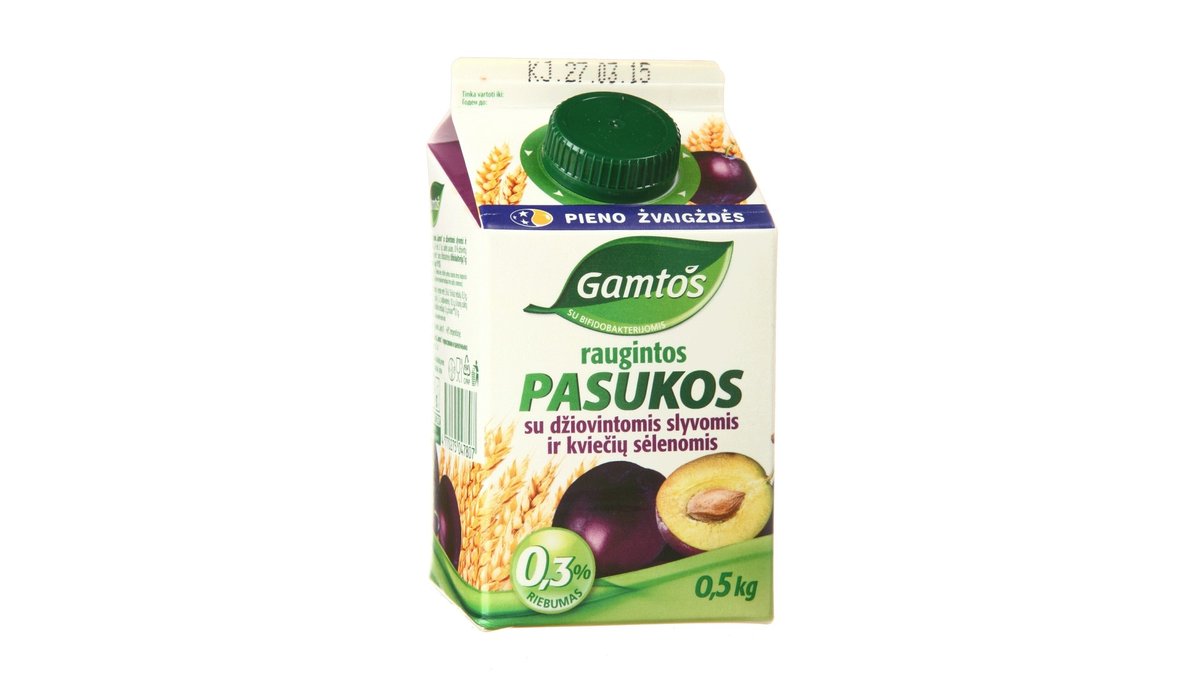 GAMTOS raugintos pasukos su džiovintomis slyvomis ir kviečių sėlenomis, 0,3 % rieb., 0,5 kg