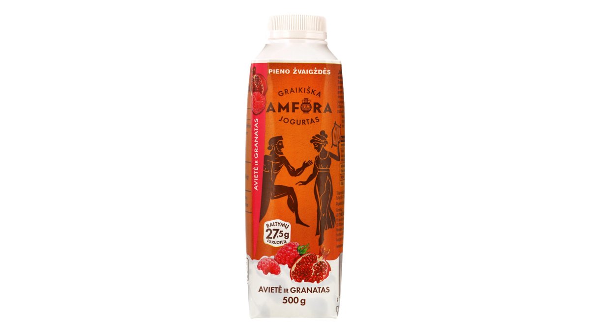 Graikiškas jogurtas su avietėmis ir granatais GRAIKIŠKA AMFORA, 2,4 % rieb., 500 g