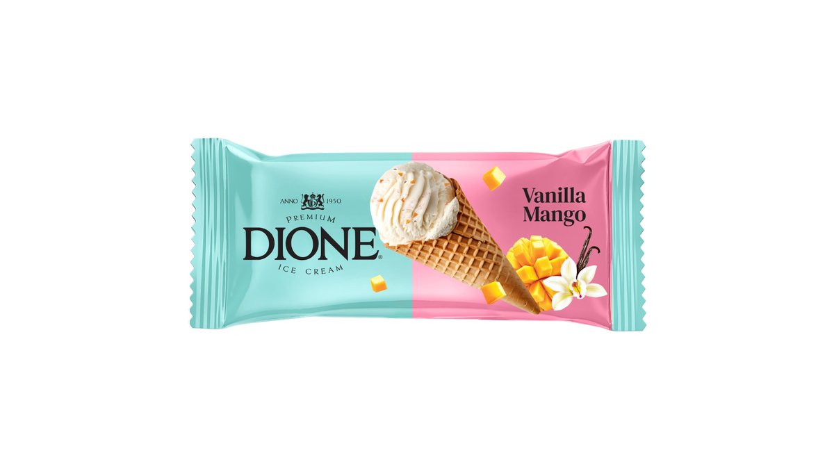 ❄️ Grietininiai valgomieji ledai NYKŠTUKAS su pasifloromis ir mangų glaistu vafliniame ragelyje, 150 ml / 93 g