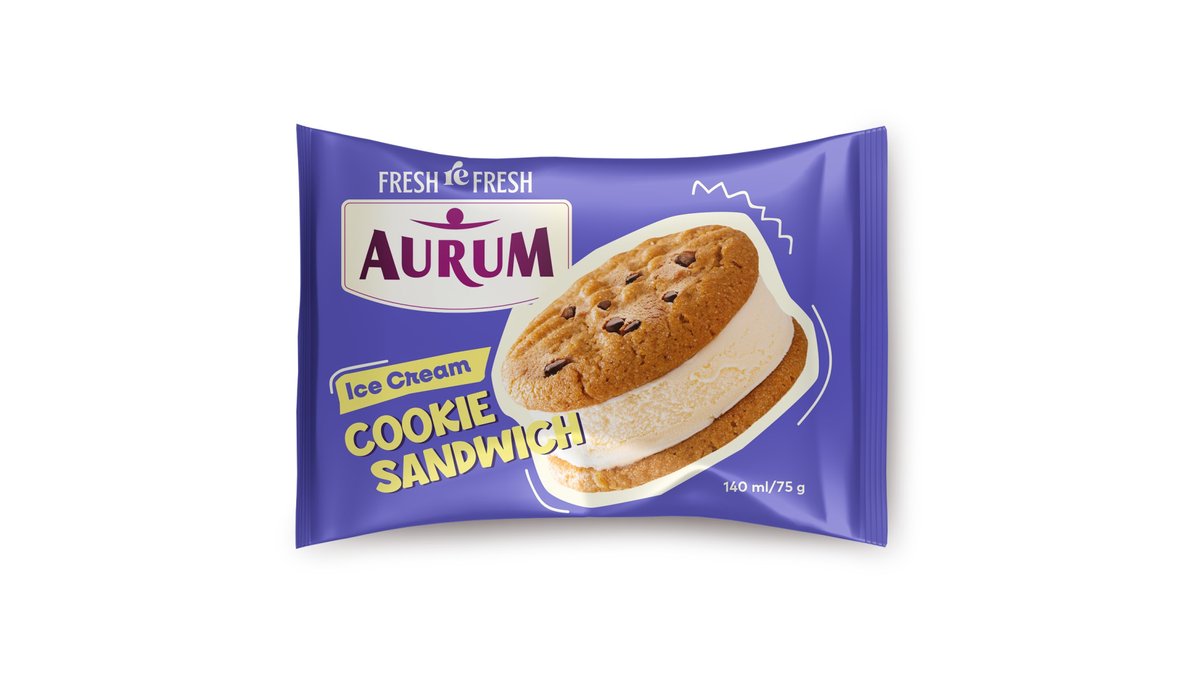 ❄️ Vaniliniai valgomieji ledai tarp sausainių su šokoladiniais gabaliukais AURUM, 140 ml / 75 g