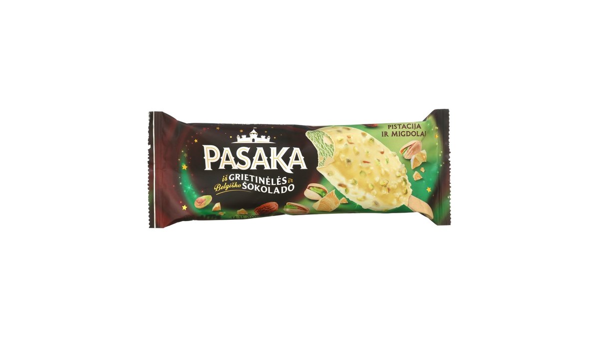 ❄️ Pistacijų valgomieji ledai vafliniame ragelyje su baltu glaistu ir vaflių traškučiais DADU, 150 ml