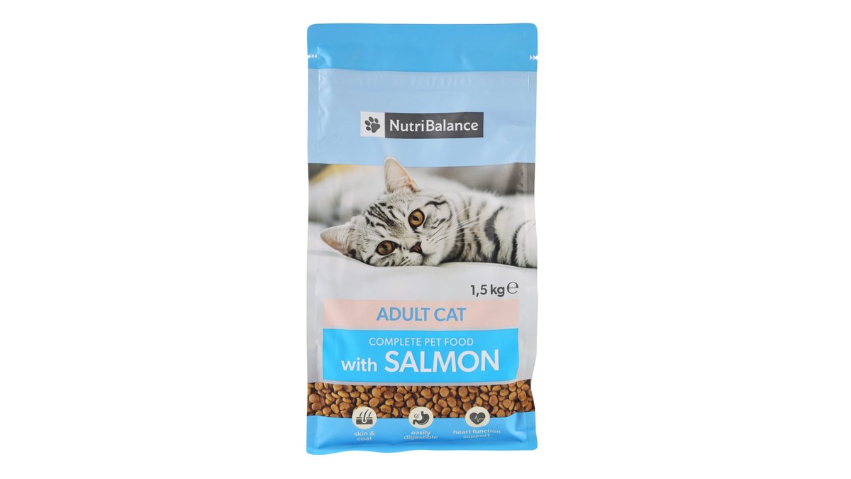 Sausas kačių ėdalas NUTRIBALANCE su lašiša, suaugusioms katėms, 1,5 kg