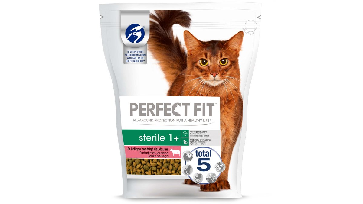 Sausas sterilizuotų kačių ėdalas su jautiena PERFECT FIT STERILE, 750g