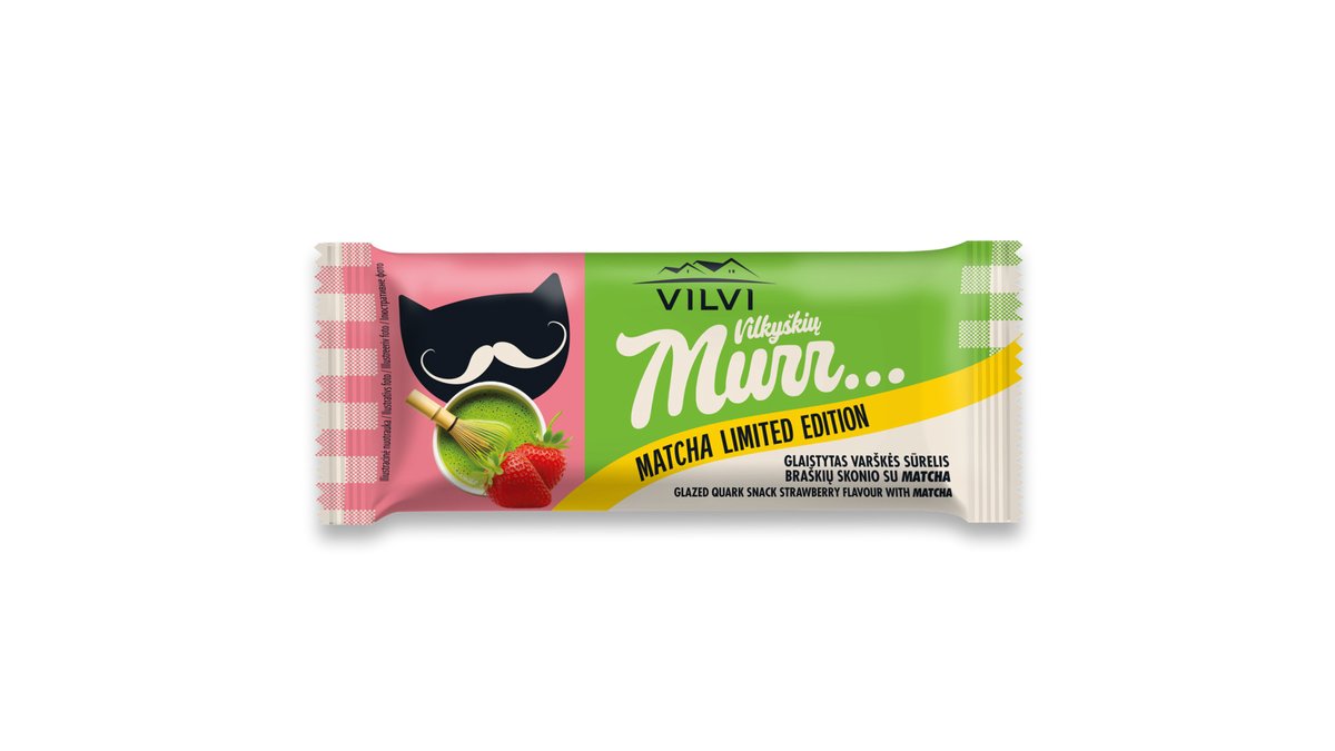 Glaistytas varškės sūrelis braškių skonio su Matcha VILVI VILKYŠKIŲ MURR LIMITED EDITION, 30 %, 40 g